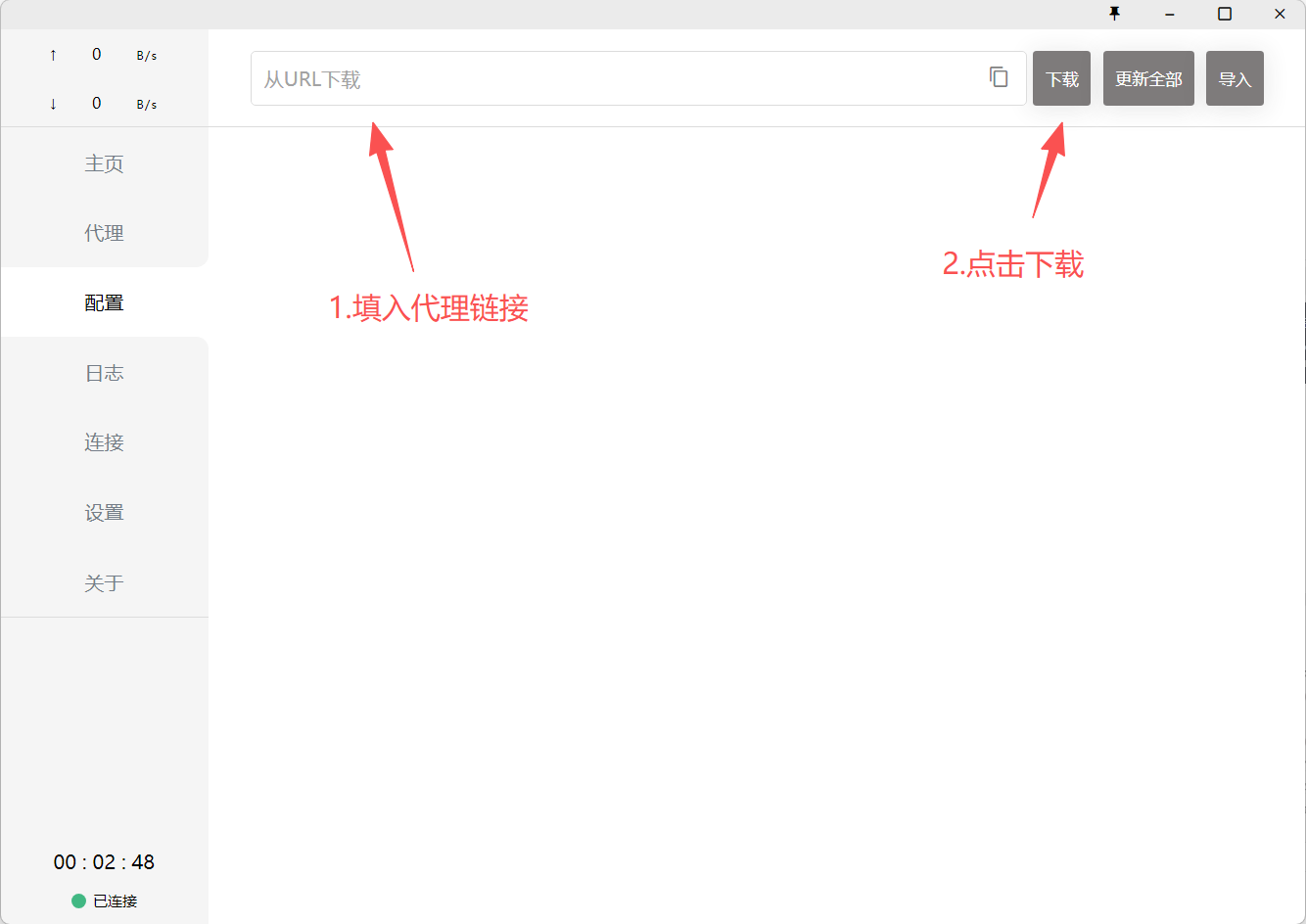 - 在顶部的输入框内,粘贴您的服务提供商给予的订阅链接 URL。