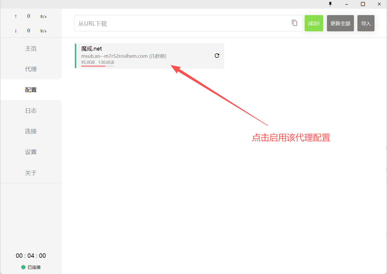 - 下载成功后,配置文件会出现在下方的列表中。点击该配置文件名称以激活它。